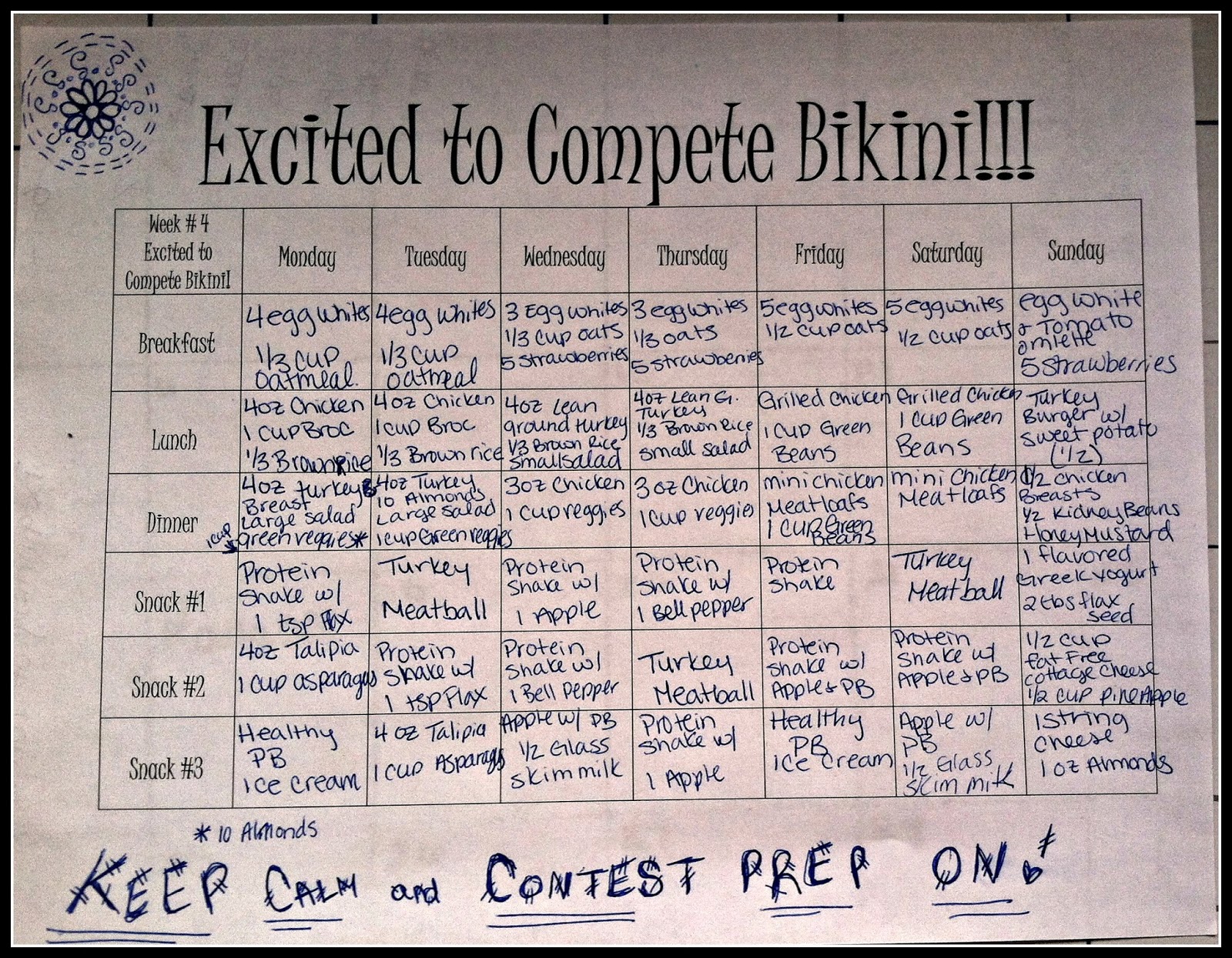 What you need to do is prep meals in your gym backpack or duffle bag and follow your diet exactly. The Prep Diet is the idea there is some magic set of foods you eat to get into stage condition. When you really want to succeed, the head must be set so that you don't have the feeling.